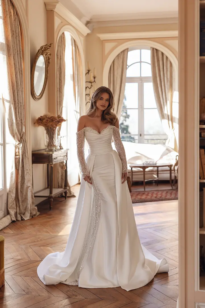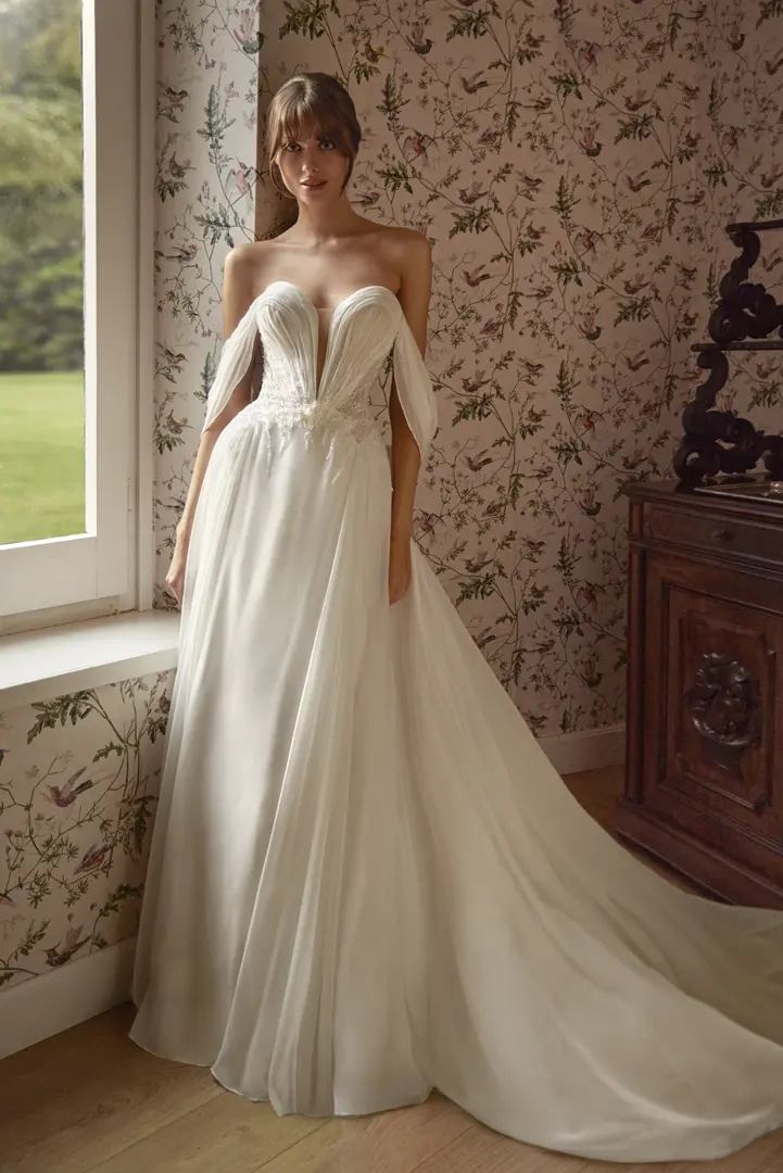 Una collezione che celebra l’amore attraverso linee raffinate, tessuti preziosi e dettagli senza tempo. Creazioni pensate per chi sogna un’eleganza autentica.
